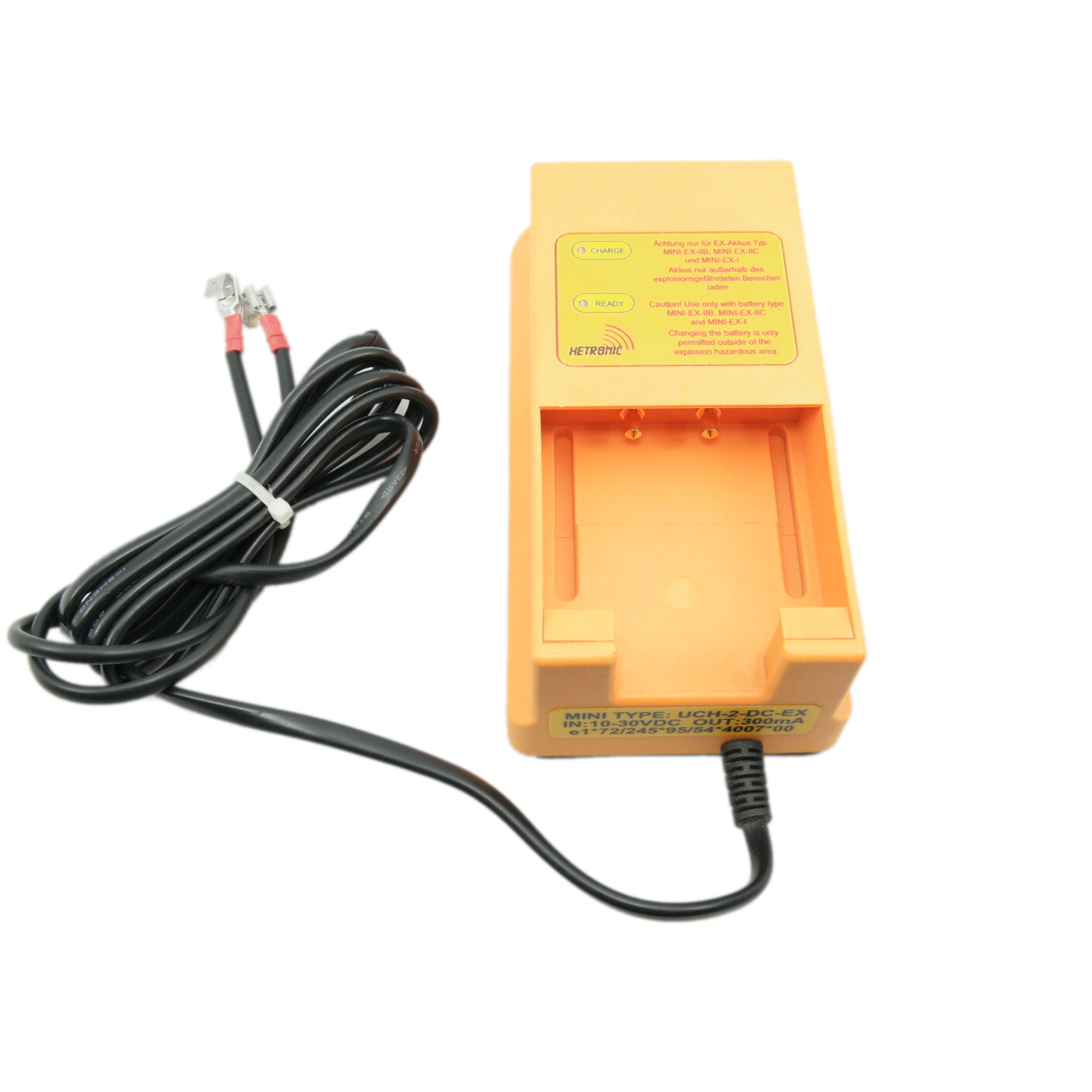 The battery charger MINI UCH-2-DC-EX 10-30VDC is suitable for the NOVA-L, NOVA-XL, GL, GR, EURO, ERGO, ERGO-F and MINI. The item number is 68109610.