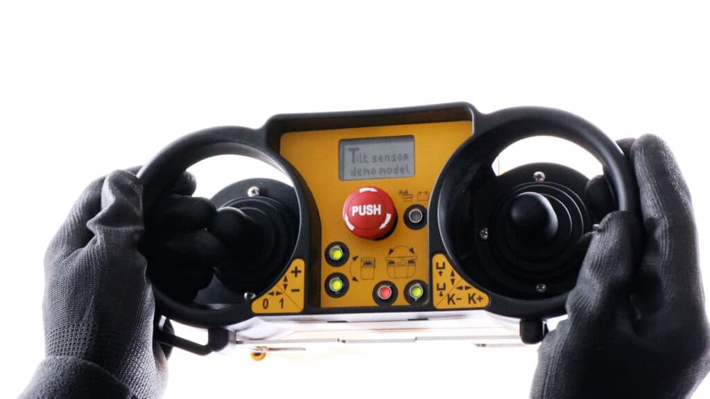 Increase operator safety with the Tilt Sensor. In fact, if the operator or transmitter falls, all functions are immediately disabled.